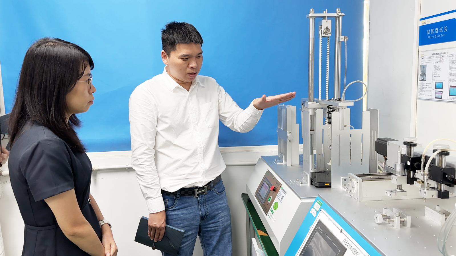 儀式后,雙方代表參觀(guān)了冠群電子實(shí)驗室,重點(diǎn)了解實(shí)驗室的檢測與服務(wù)能力,涵蓋可靠性測試設備,以及滾筒試驗、跌落試驗、落球沖擊試驗、防水測試、砂石耐磨試驗、溫度沖擊試驗、高溫高濕試驗等重要可靠性檢測項目。