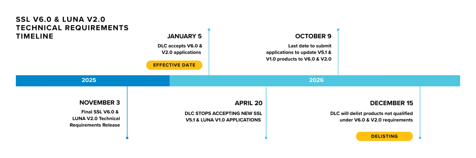 [導讀]: 美國時(shí)間2025年11月3日,DLC發(fā)布了SSL V6.0 和 LUNA V2.0 FINAL版,這是自2020年SSL V5.0和V5.1發(fā)布以來(lái),DLC針對SSL照明產(chǎn)品計劃的重大更新,2026 年 1 月 5 日開(kāi)始可以按照新標準申請DLC。此次DLC將SSL V6.0和LUNA V2.0的要...