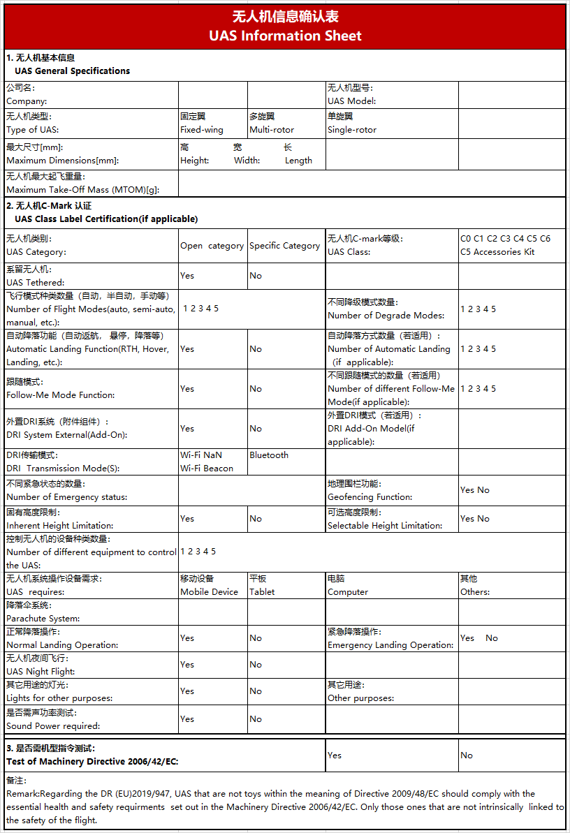 BACL無(wú)人機測試申請表: